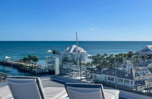 The Penthouse at One Marina is 6,251 square feet and is a 3 bedroom, 3.5 bath duplex home with a private pool and roof deck providing glorious views over the #1 Marina in The Bahamas and the turquoise ocean beyond. This beautiful home comprises contemporary kitchen, living room with TV, washroom. balcony with amazing views of Palm Cay and the Ocean, rooftop grill and private pool.